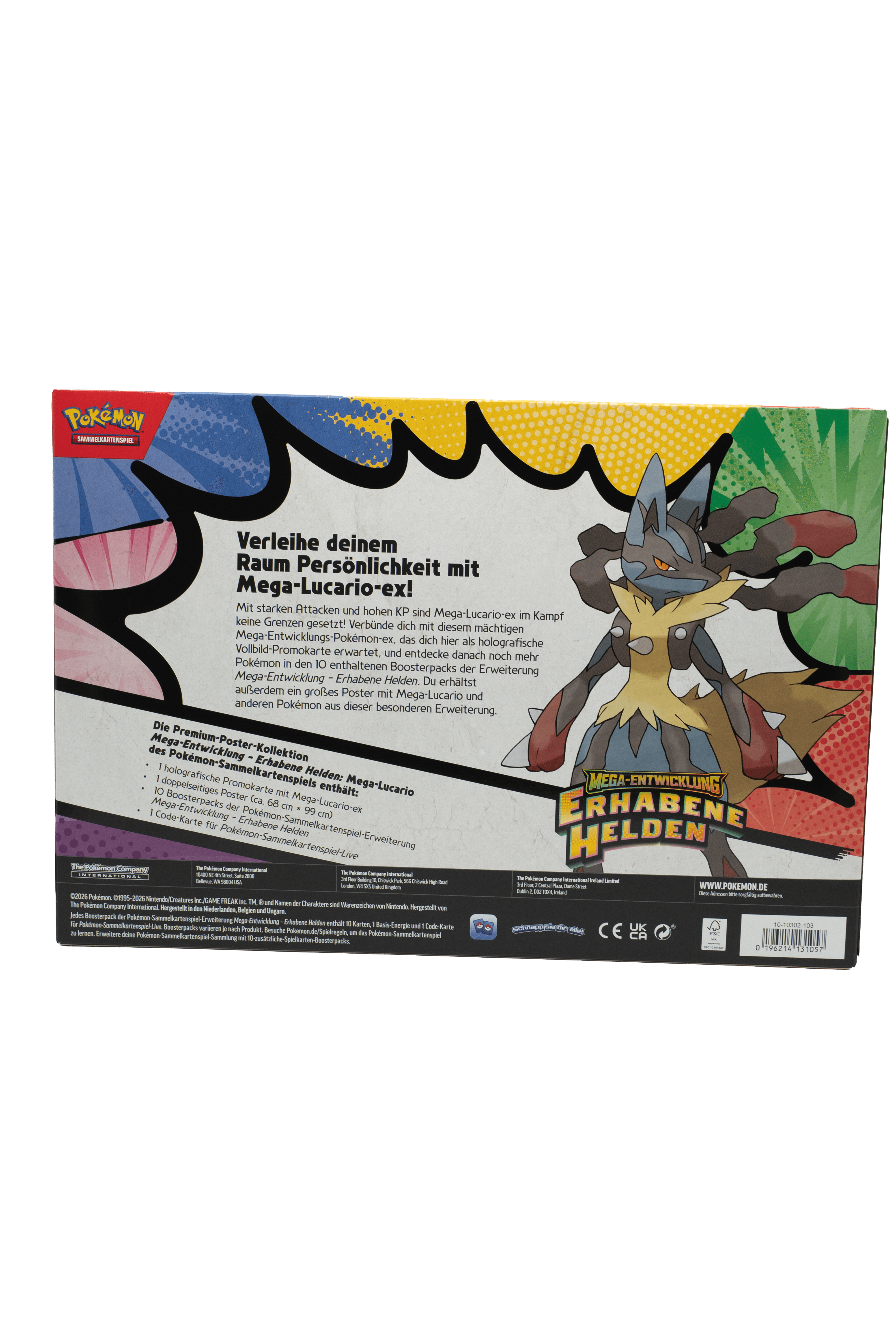 Mach deinen Raum mit Mega-Guardevoir-ex oder Mega-Lucario-ex zu etwas ganz Besonderem! Diese starken Pokémon mit hohen KP und kraftvollen Attacken sind im Kampf fast unschlagbar. Schnapp dir dieses mächtige Mega-Entwicklungs-Pokémon-ex als holografische Vollbild-Promokarte. Zusätzlich bekommst du ein großes Poster mit Mega-Guardevoir-ex oder Mega-Lucario-ex und anderen Pokémon aus dieser speziellen Serie.