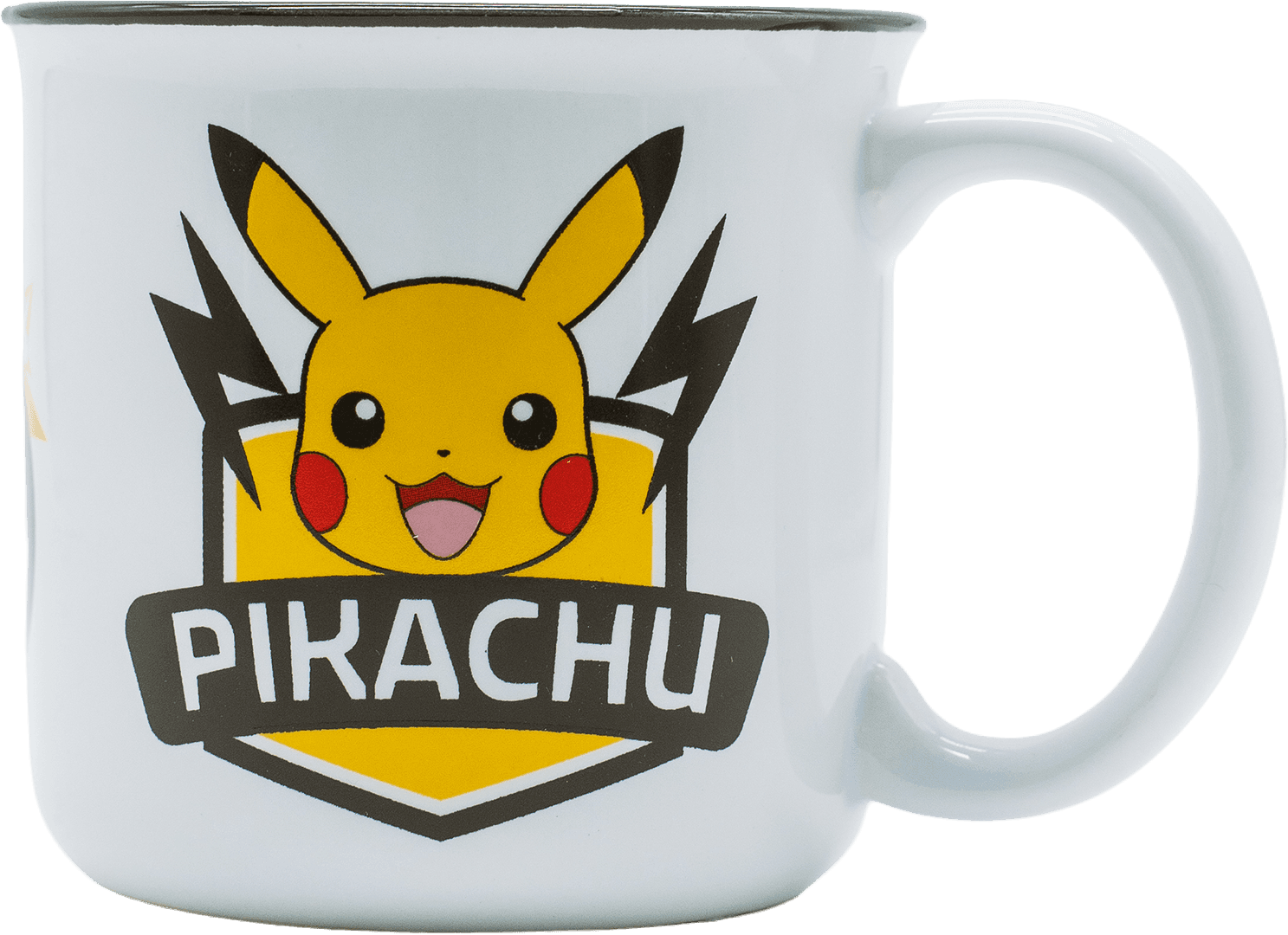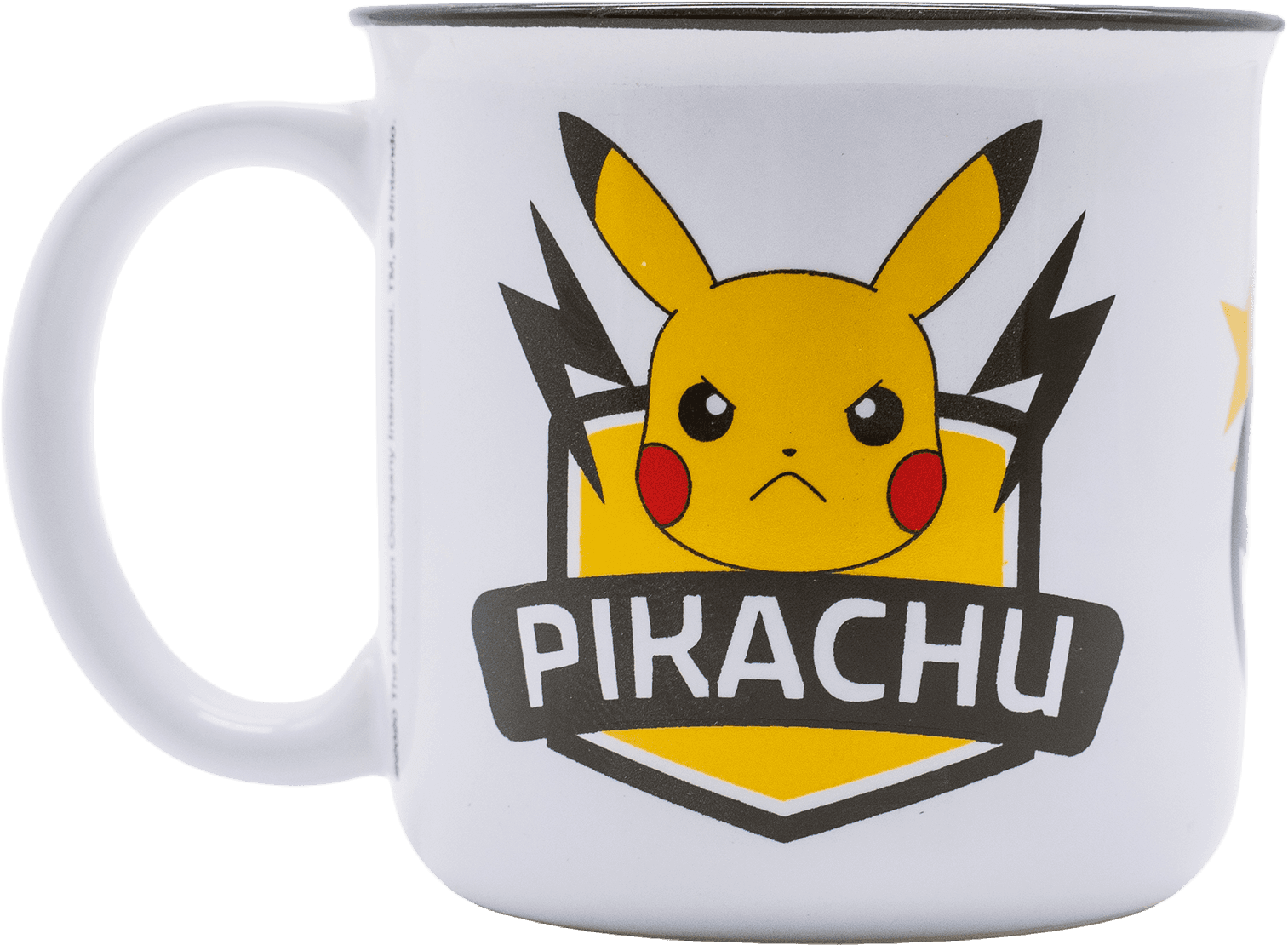 Die Pokémon Pikachu Tasse begeistert mit einem ikonischen Print: Pikachu im coolen Schild-Logo, umgeben von Blitzen – offiziell lizenziert für echte Fans.