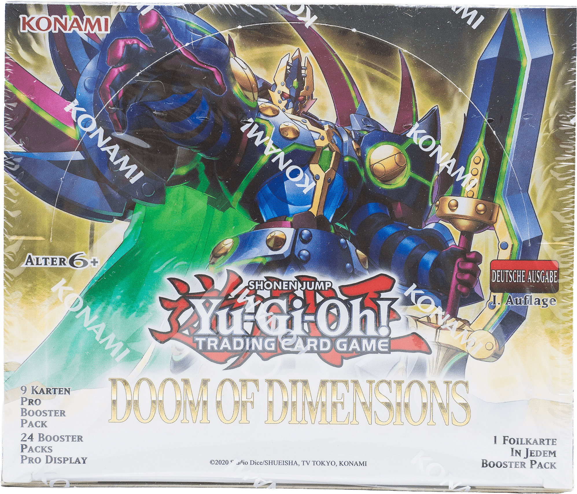 Das Doom of Dimensions Booster Display (1. Auflage, Deutsch) bringt mit 24 Boostern (je 9 Karten) neue Dimensionen ins Yu-Gi-Oh! TCG – perfekt für D/D/D-Support aus ARC-V und Meta-Strategien.